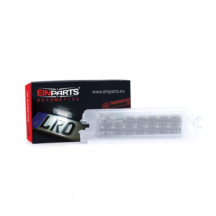 Lampka LED podświetlenia tablicy rejestracyjnej EP129 EinParts Automotive to zamiennik halogenowej lampki. Lampka powoduje jednolite i nowoczesne podświetlenie tablicy rejestracyjnej, a z praktycznego punktu widzenia: oszczędza energię i pieniądze (nie trzeba już więcej wymieniać przepalających się żarówek) oraz nie koroduje (obudowa z tworzywa sztucznego). Posiada homologację oraz 2-letnią gwarancję.