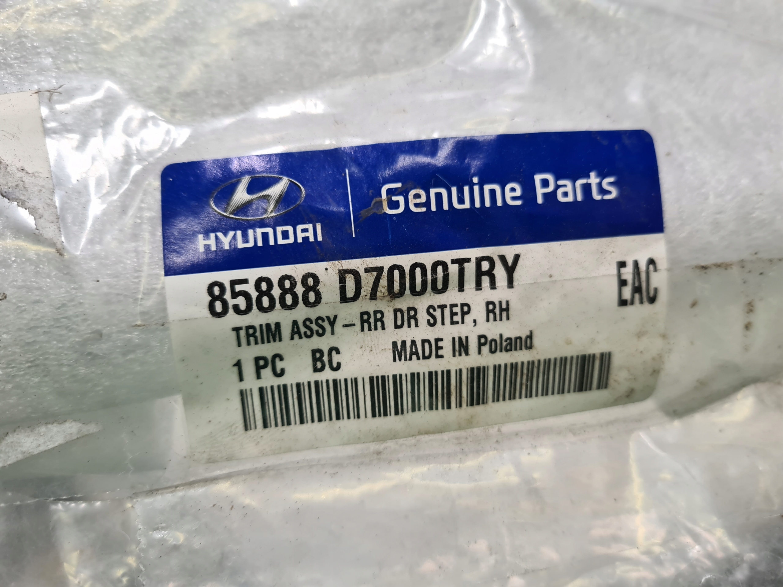 Fabrycznie nowa nakładka progowa. Oryginał hyundai nr 85888D7000 Strona prawy tył