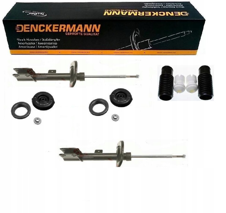 KOMPLET AMORTYZATORÓW GAZOWYCH RAZEM Z OSŁONAMI I ODBOJAMI NA PRZÓD FIRMY DENCKERMANN RAZEM Z GÓRNYMI MOCOWANIAMI Z ŁOŻYSKAMI