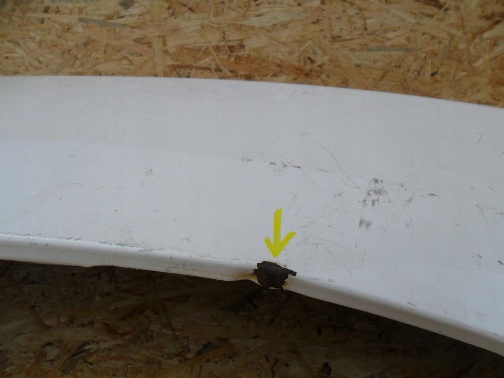 Błotnik posiada głębsze rysy, wgniecenia punktowe