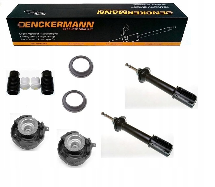 KOMPLET AMORTYZATORÓW GAZOWO-OLEJOWYCH RAZEM Z OSŁONAMI I ODBOJAMI NA PRZÓD FIRMY DENCKERMANN ORAZ GÓRNE MOCOWANIA RAZEM Z ŁOŻYSKAMI
