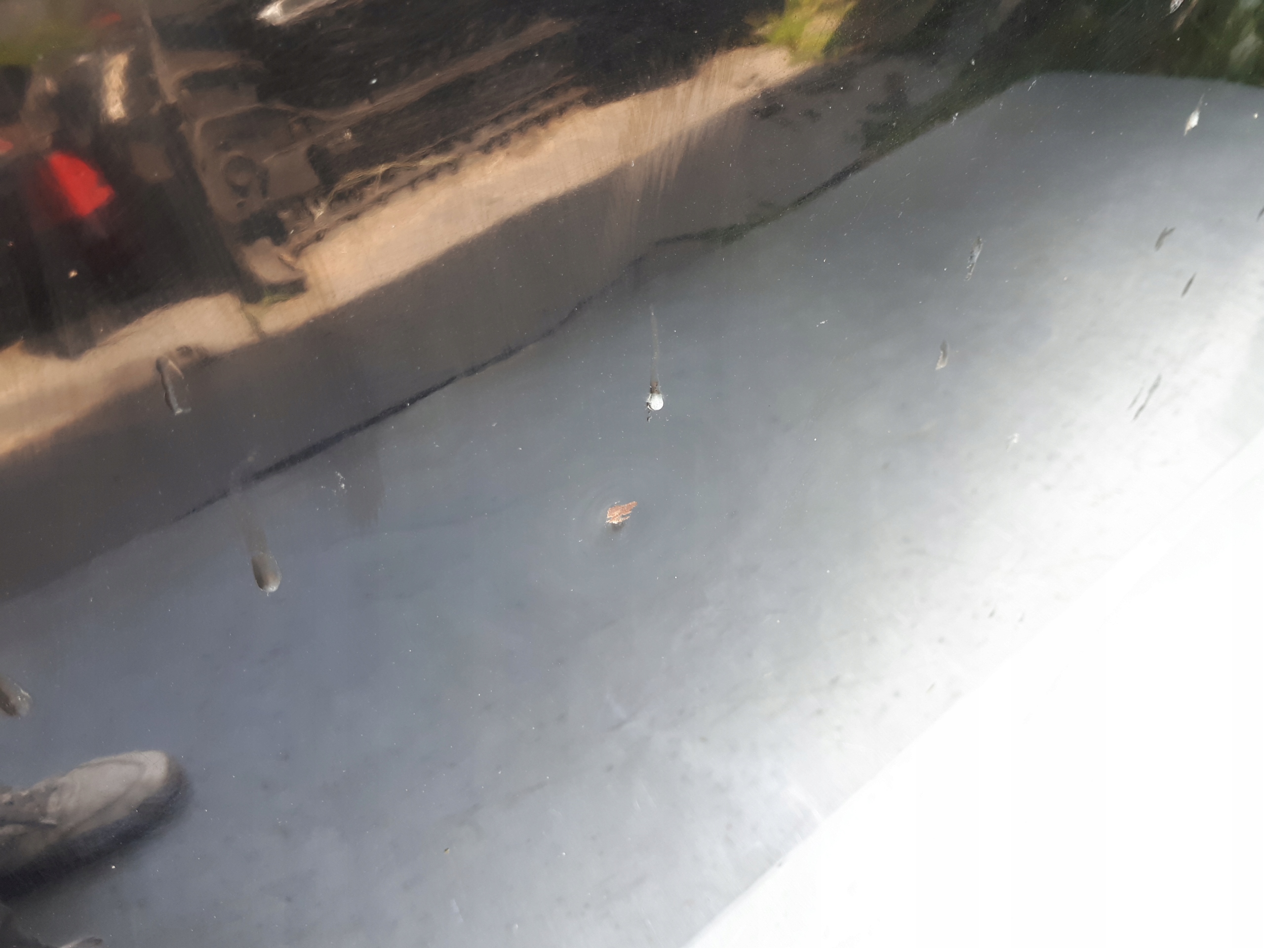 MASKA MINIMALNIE PRZEŁAMANA W ŚRODKOWEJ CZĘŚCI. DELIKATNE WGNIECENIE ORAZ ZAŁAMANIE W PRZEDNIEJ CZĘŚCI. USZKODZENIA ZAZNACZONE NA ZDJĘCIACH. WIDOCZNE ZABRUDZENIA PO ŻYWICY.