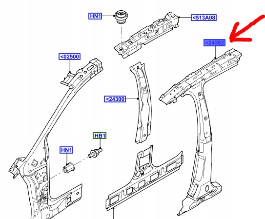 Rama poszycie słupka B , lewa strona