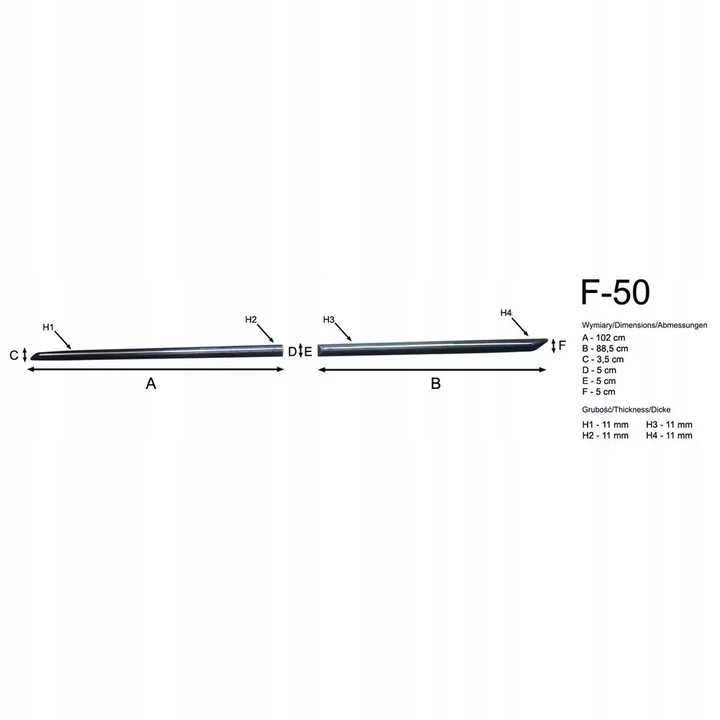 - Łatwy montaż - listwy przyklejane do nadwozia za pomocą taśmy samoprzylepnej 3M