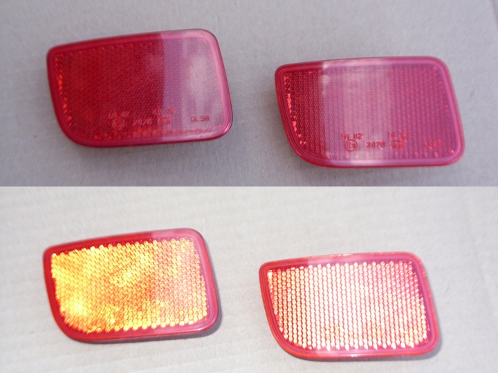 Odblaski całe , bez wyszczerbień, czy uszkodzeń. Zatrzaski całe.