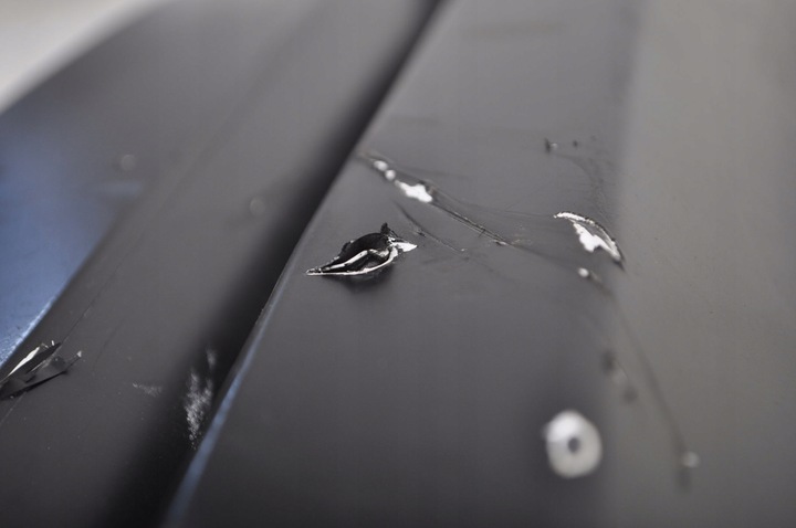 USZKODZONE MOCOWANIA, WGNIECENIE, OTARTA FOLIA, WYSZCZERBIENIE.