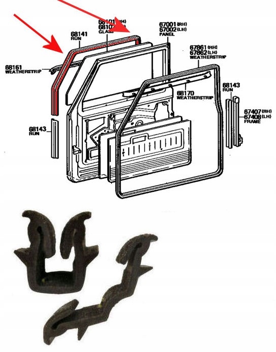 Toyota cruiser j4 прокладка каналу скла двері