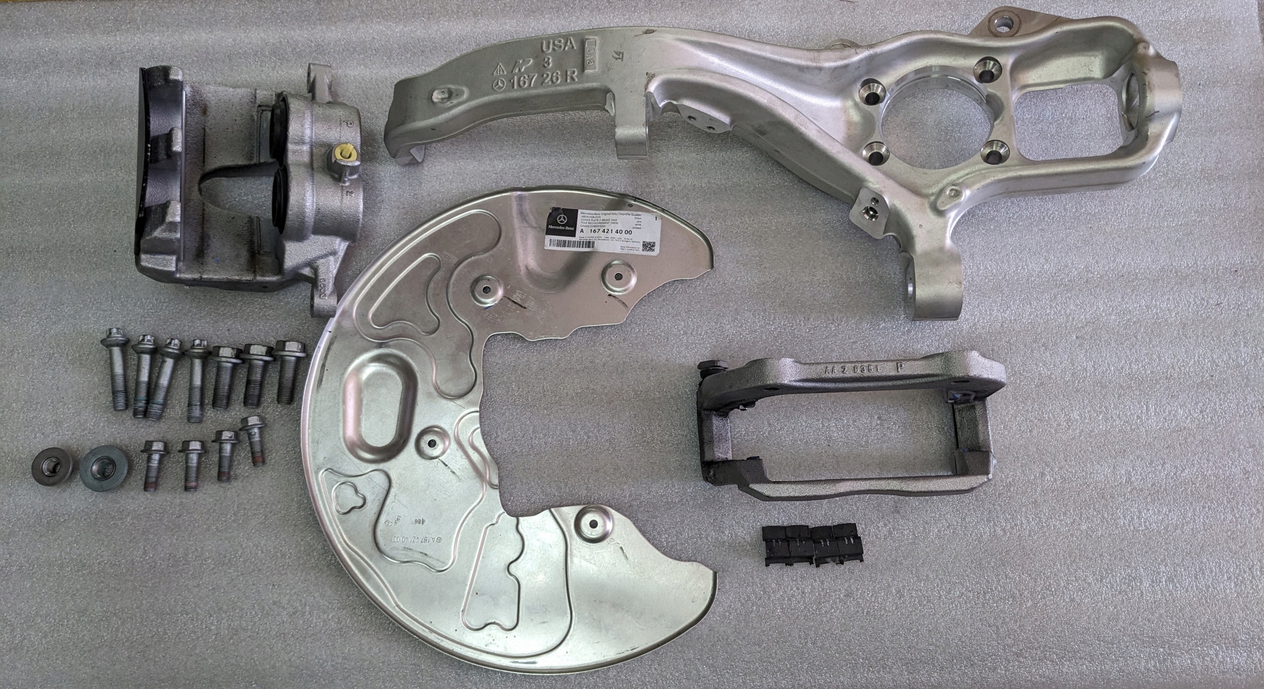 NOWY ORYGINALNY KOMPLET ZAWIERAJĄCY ZWROTNICĘ, OSŁONĘ TARCZY HAMULCOWEJ, JARZMO HAMULCA ORAZ ZACISK HAMULCOWY STRONY PRAWEJ PRZEDNIEJ DO SAMOCHODÓW MARKI MERCEDES-BENZ GLE,GLS W167, V167. NUMERY KATALOGOWE CZĘŚCI: ZWROTNICA 16726R, OSŁONA A1674214000, JARZMO A1674215701, ZACISK A1674218100. CZĘŚCI SĄ PRZEDSTAWIONA NA ZAŁĄCZONYCH ZDJĘCIACH.