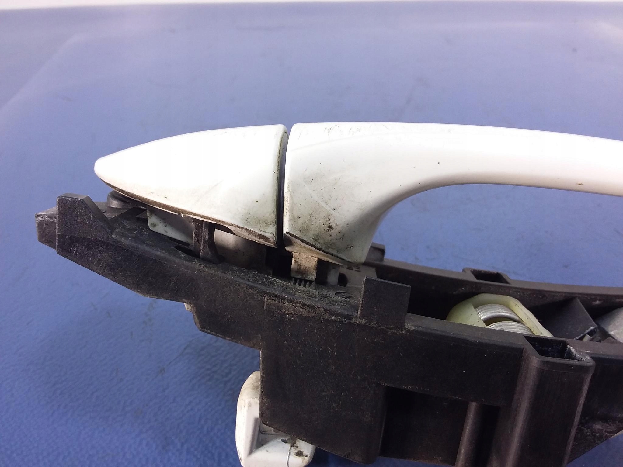 Opis: kod koloru 650 Calcitweiss, uszkodzenia widoczne na zdjęciach, zarysowania -jakość B && MERCEDES C W203 KLAMKA TYŁ PRAWA 650 CALCITWEISS