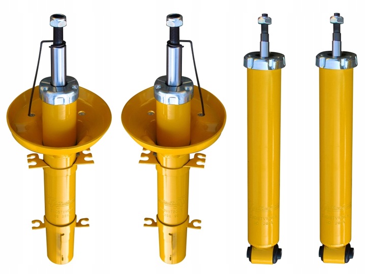 Amortyzatory gazowe posiadają podwyższoną siłę tłumienia. O skróconym skoku pracy, sprawiają, że samochód uzyska doskonałe właściwości jezdne, usztywniając pracę zawieszenia. Amortyzatory z regulacją na talerzykach.