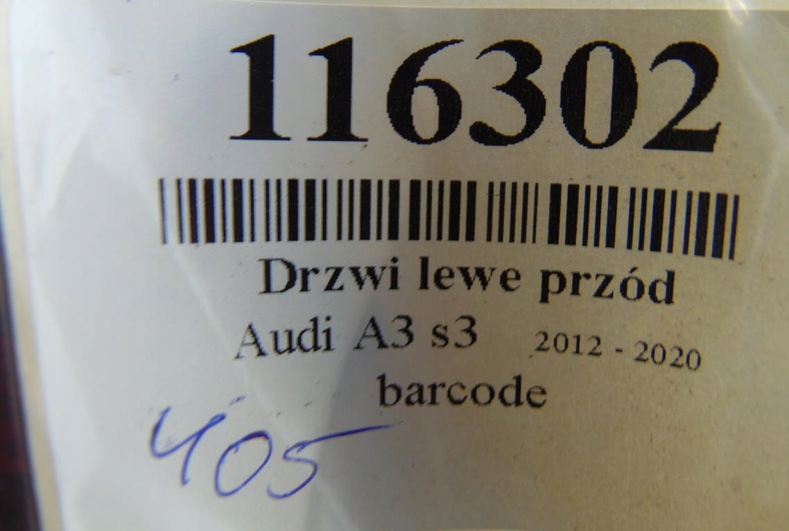 | Каталожний номер запчастини: | AUDI A3 S3 DRZWI LEWY PRZÓD HB3 |