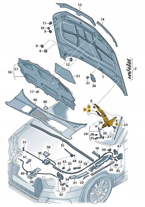 Петля капота перед ліва audi a5 b9 aso оригінал