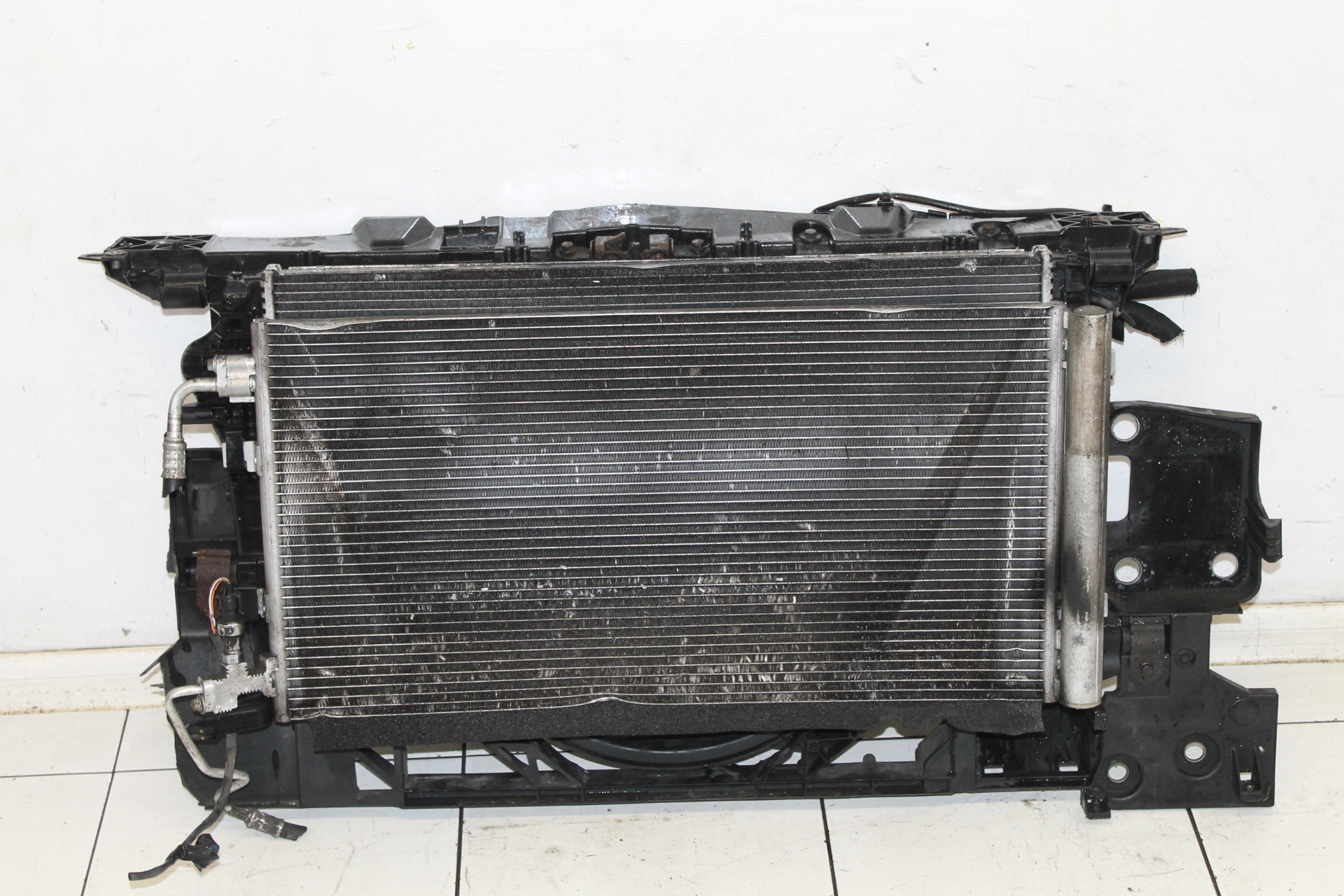 Stan wizualny widoczny na zdjęciach, pas uszkodzony z prawej strony - zdjęcie nr 2 oraz 3 i 4, chłodnica klimatyzacji uszkodzona dołem, wentylator oraz chłodnica wody sprawne.