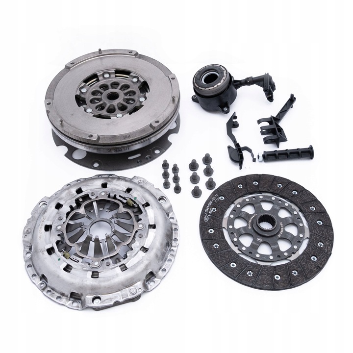 - Na produkt składa się: Zestaw sprzęgła z kołem dwumasowym, wysprzęglikiem centralnym i śrubami
