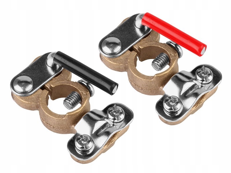 Klemy mosiężne (przepustowość do 600A) przeznaczone są do wszystkich typów akumulatorów 6-12-24V.