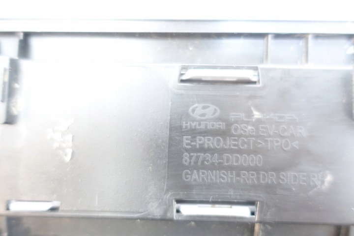 - Numer katalogowy części: LISTWA DRZWI PRAWY TYŁ HYUNDAI KONA EV 2018- 87734-DD000