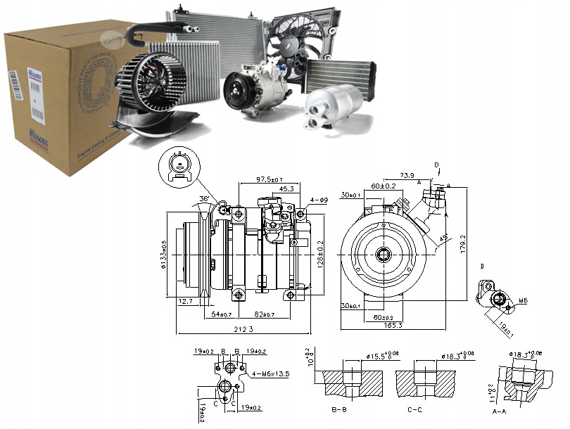 Zamienniki (kody OE): MITSUBISHI 4471707850, MITSUBISHI 4471706640, MITSUBISHI 4472203652, MITSUBISHI 4472203992, MITSUBISHI MR568289, MITSUBISHI 4472203991, MITSUBISHI MR500958, MITSUBISHI MR500876, MITSUBISHI 4472203651, MITSUBISHI 4472203658, MITSUBISHI MR398533, MITSUBISHI MR360816, MITSUBISHI 4472203657, MITSUBISHI 4472203653, MITSUBISHI 4471708026, MITSUBISHI 4472203656, MITSUBISHI 4472203655, MITSUBISHI 4472203993, MITSUBISHI 4472203654, VAN WEZEL 3200K219, DENSO DCP45009, AKS DASIS 852600N, SCHLIECKMANN 6032K219, NRF 32458G, FRIGAIR 92030244, AVA QUALITY COOLING MTK219, ELSTOCK 510434, LIZARTE 810845005, TEAMEC 8638809, DRI 700510434, LUCAS ACP533.