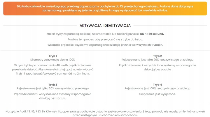 BLOKADA PRZEBIEGU DLA AUDI A3/S3/RS3 - 8Y