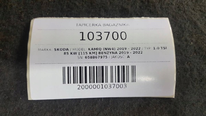 Przedmiot aukcji: TAPICERKA KLAPY BAGAŻNIKA SKODA KAMIQ 2019 EU