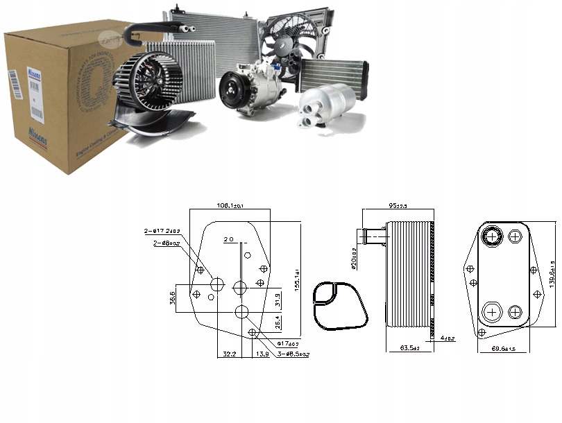- Wymiary radiatora: 140 x 70 x 64 mm