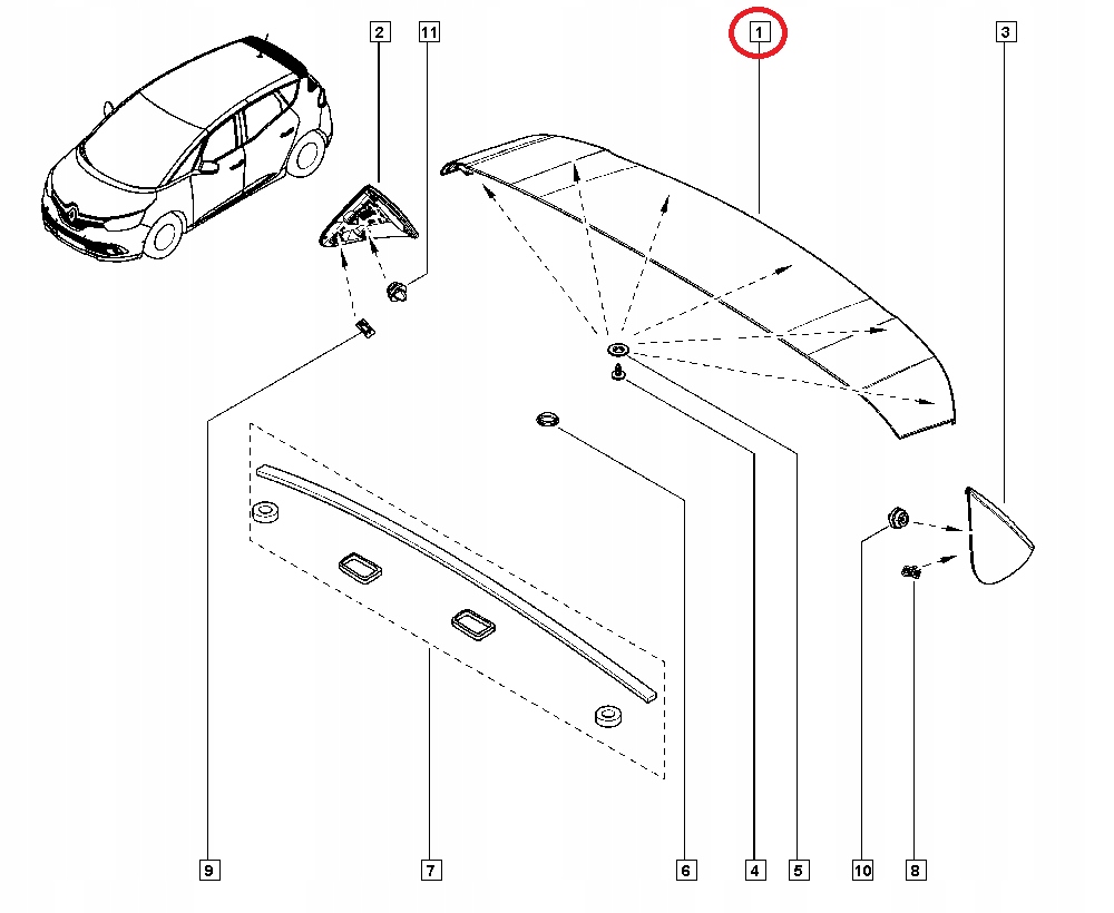 Scenic iv 4 новий спойлер спойлер накладка кришки багажника застібки оригінал