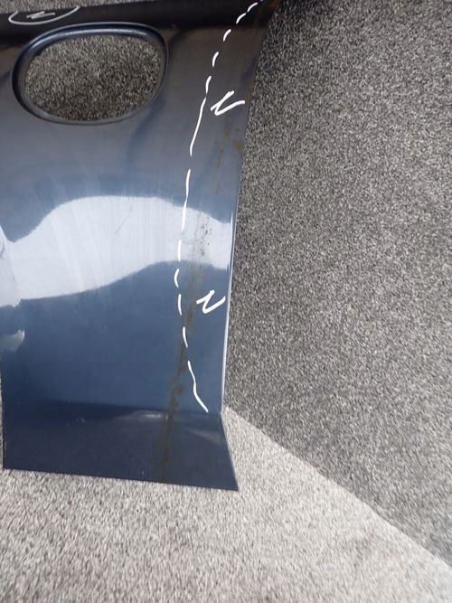 Błotnik w zaznaczonym miejscu uszkodzony