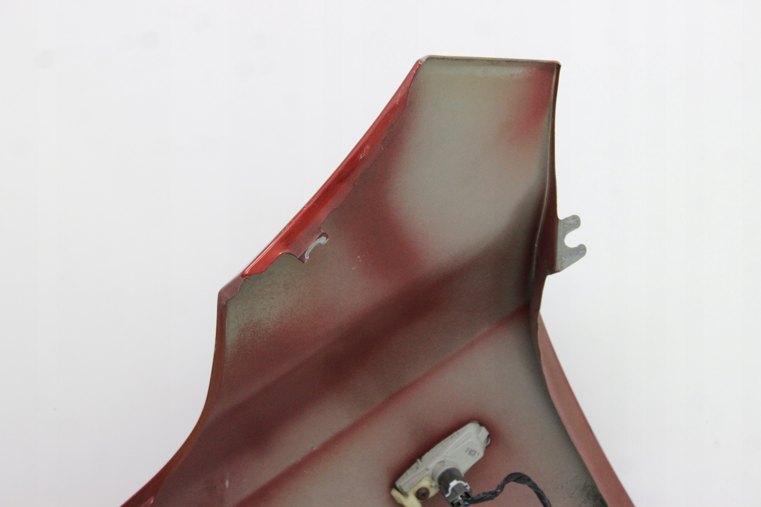 Stan wizualny widoczny na zdjęciach, uszkodzenia (rysy, otarcia) widoczne na zbliżeniach, minimalne wgniecenie nad kierunkowskazem- zdjęcie nr 3 oraz w przedniej części - zdjęcie nr 4.