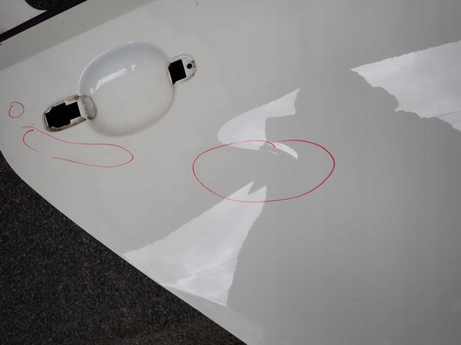 Drzwi w zaznaczonym miejscu uszkodzone