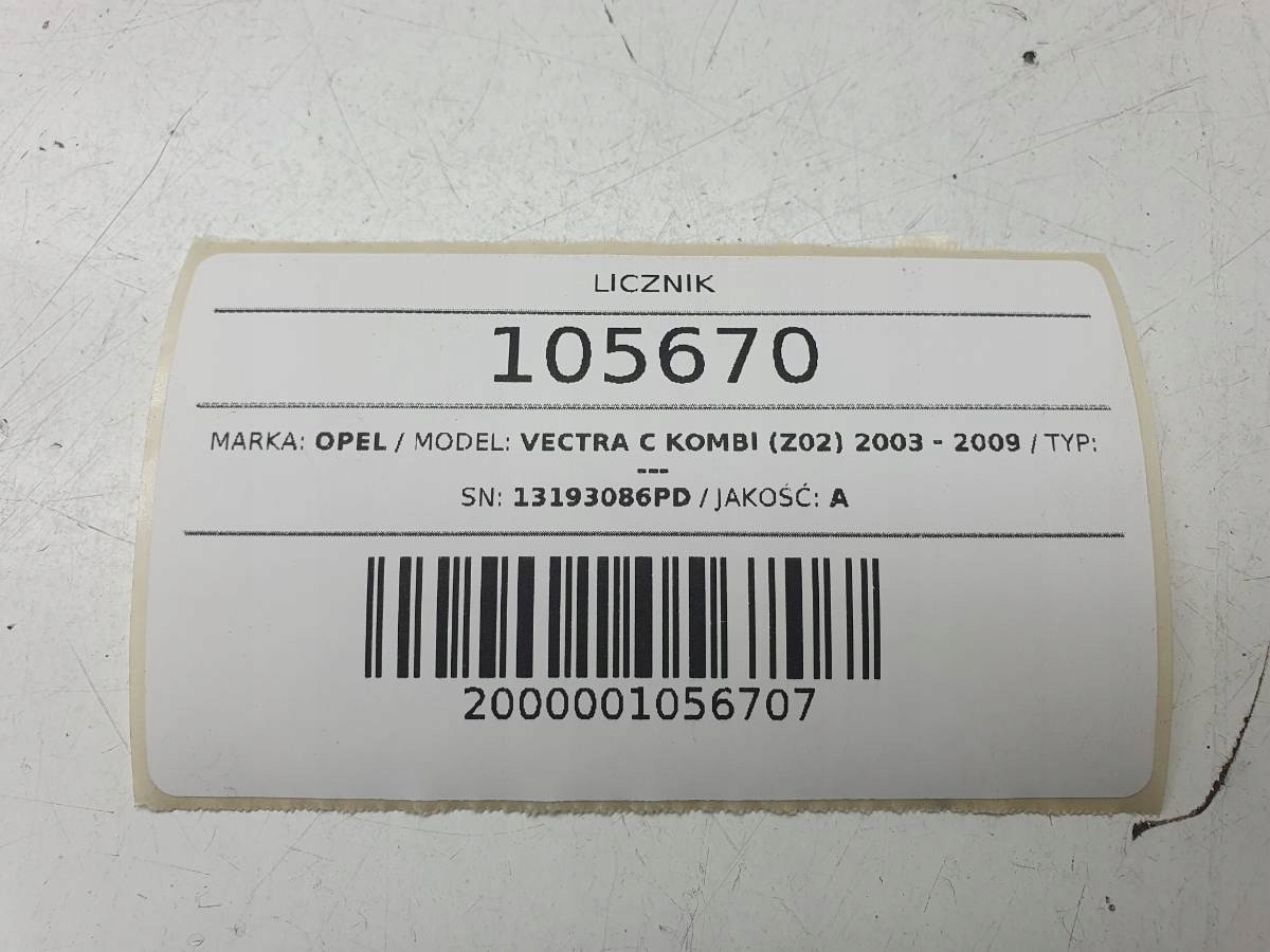 Przedmiot aukcji: LICZNIK ZEGARY 13193086PD OPEL VECTRA C 1.9 CDTI EUROPA