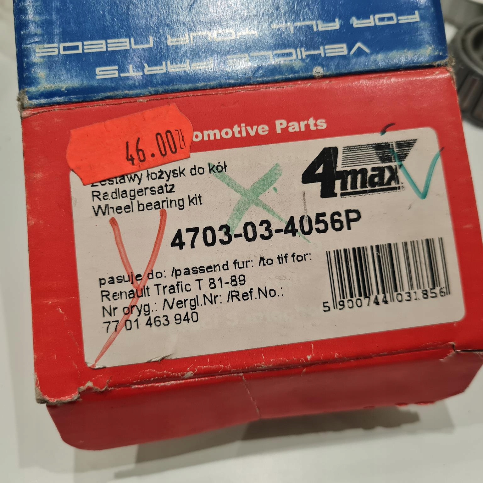 RENAULT TRAFIC 81-89 ZESTAW ŁOŻYSK KOŁA TYŁ 4MAX 4703-03-4056P