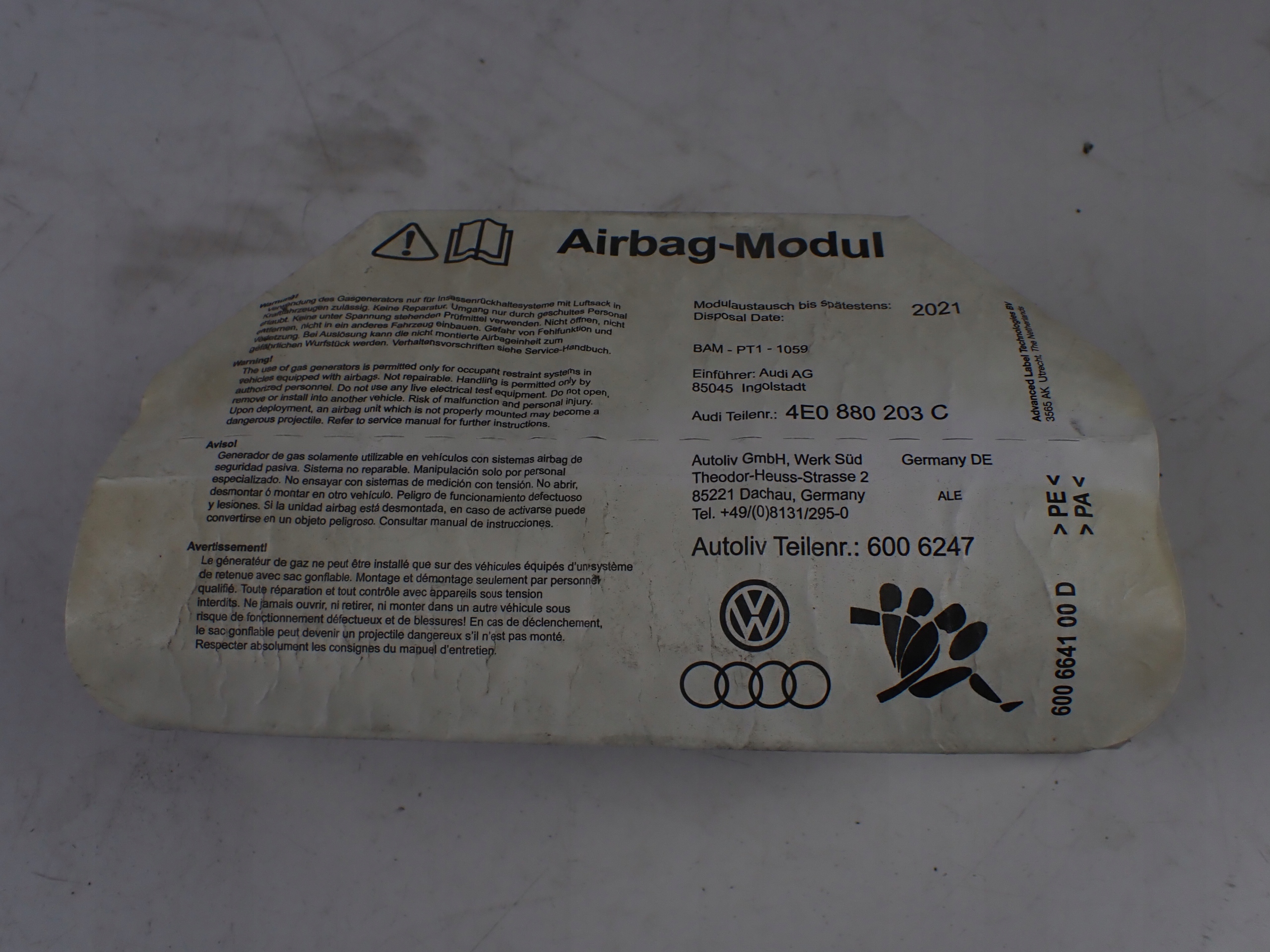 Подушка подушка безпеки пасажира audi a8 s8 d3 5.2 fsi короткий 4e0880203c
