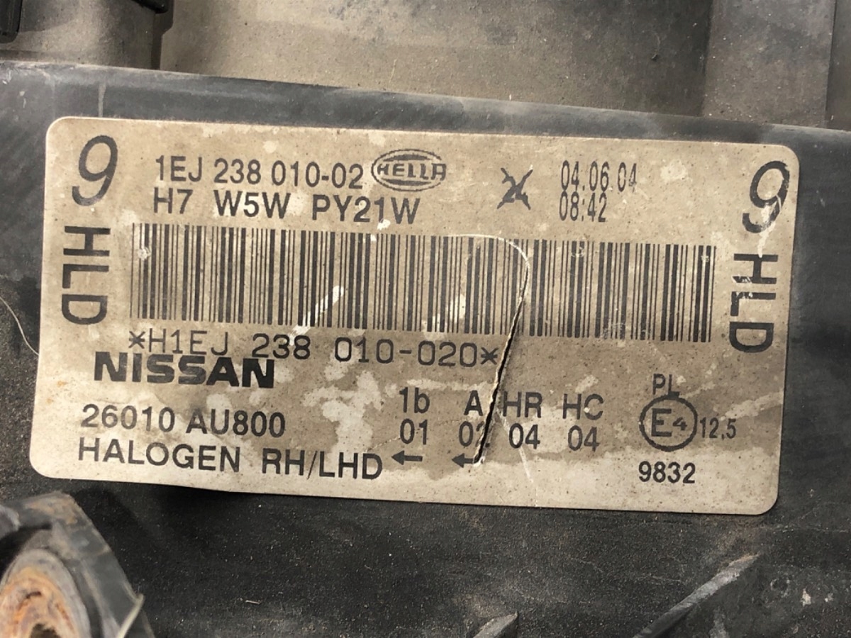 Фара правий перед nissan primera p12 лампа