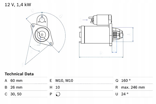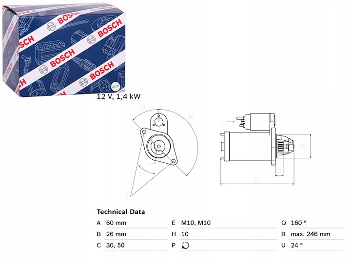 Rozrusznik (12V, 1,4kW) MERCEDES C (CL203), C T-MODEL (S202), C T-MODEL (S203), C (W202), C (W203), C (W204), CLK (A208), CLK (A209), CLK (C208), CLK (C209) 2.4-4.3 12.96- BOSCH