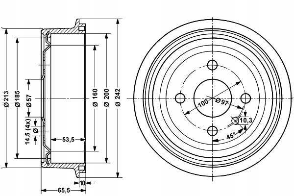 - Średnica zewnętrzna bębna hamulca [mm]: 242,0