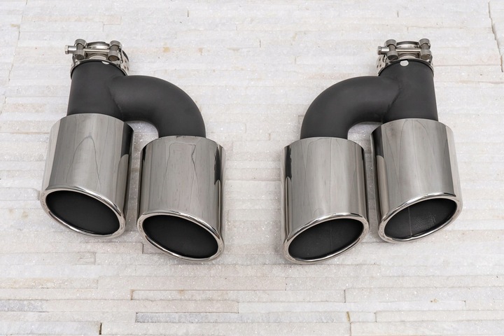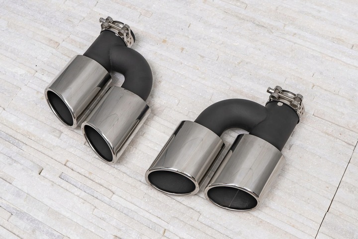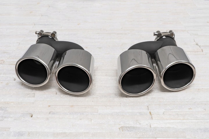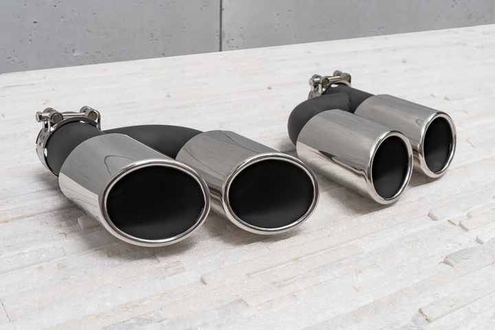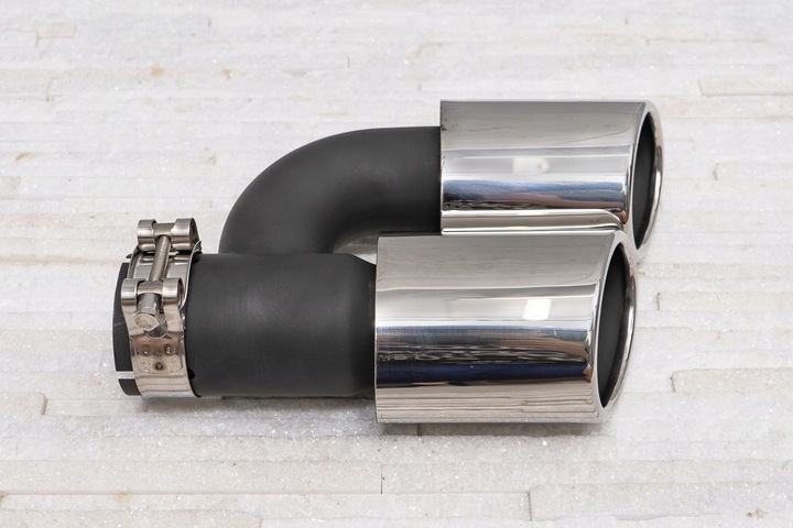 Stalowe, tuningowe końcówki wydechu zaprojektowane zostały tak, by idealnie podkreślać charakter samochodu, łącząc sportową moc z nowoczesną elegancją. Końcówka wydechu została wykonana z wysokiej jakości stali nierdzewnej, polerowanej. Rura została wykonana ze stali malowanej proszkowo na kolor czarny. Produkt cechuje się najwyższą odpornością na uszkodzenia spowodowane warunkami atmosferycznymi, działaniem substancji chemicznych itp.
