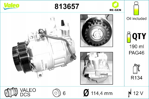 Kompresor klimatyzacji MERCEDES C (CL203), C T-MODEL (S203), C T-MODEL (S204), C (W203), C (W204), CLK (A209), CLK (C209), CLS (C219), E T-MODEL (S211), E (W211), G (W463) 2.0-6.0 04.98- VALEO