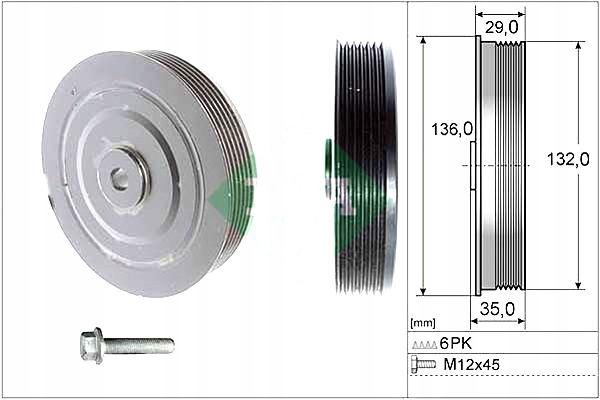 Koło pasowe wału korbowego (liczba żeber: 6) RENAULT CLIO II, KANGOO, KANGOO EXPRESS, LAGUNA I, MASTER II, MEGANE I, MEGANE I CLASSIC, MEGANE I COACH, MEGANE SCENIC, SCENIC I 1.9D 03.97- INA