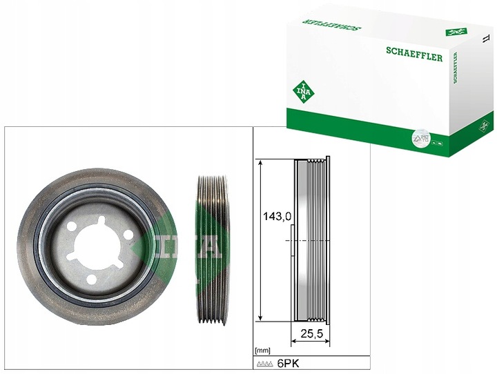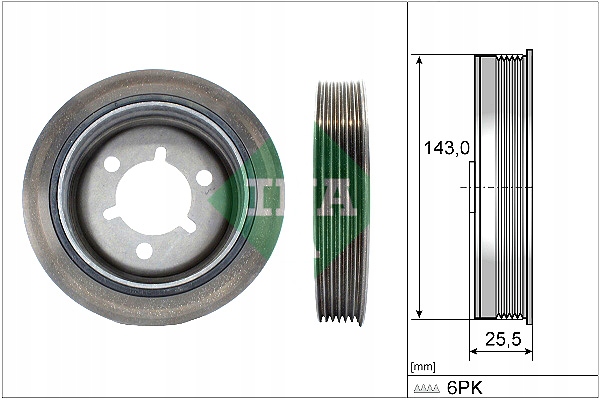 Koło pasowe wału korbowego (liczba żeber: 6) CITROEN BERLINGO, BERLINGO MULTISPACE, BERLINGO/MINIVAN, C2, C2 ENTERPRISE, C3 I, C3 II, C3 PLURIEL, C4, C4 I, NEMO 1.1-1.6LPG 06.96- INA