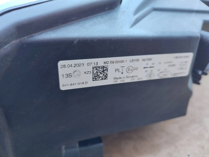 Фара лампа правий skoda superb b8 iii рестайлінг fl 3v 2023 повний led crystal