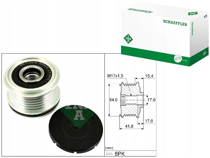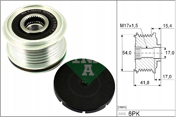 Koło pasowe alternatora pasuje do: DS DS 3, DS 7: VOLVO S80 II, V70 III: CITROEN BERLINGO, BERLINGO MULTISPACE, BERLINGO/MINIVAN, C2, C3 AIRCROSS II, C3 I, C3 III, C3 PICASSO 1.2-2.2D 06.96- INA