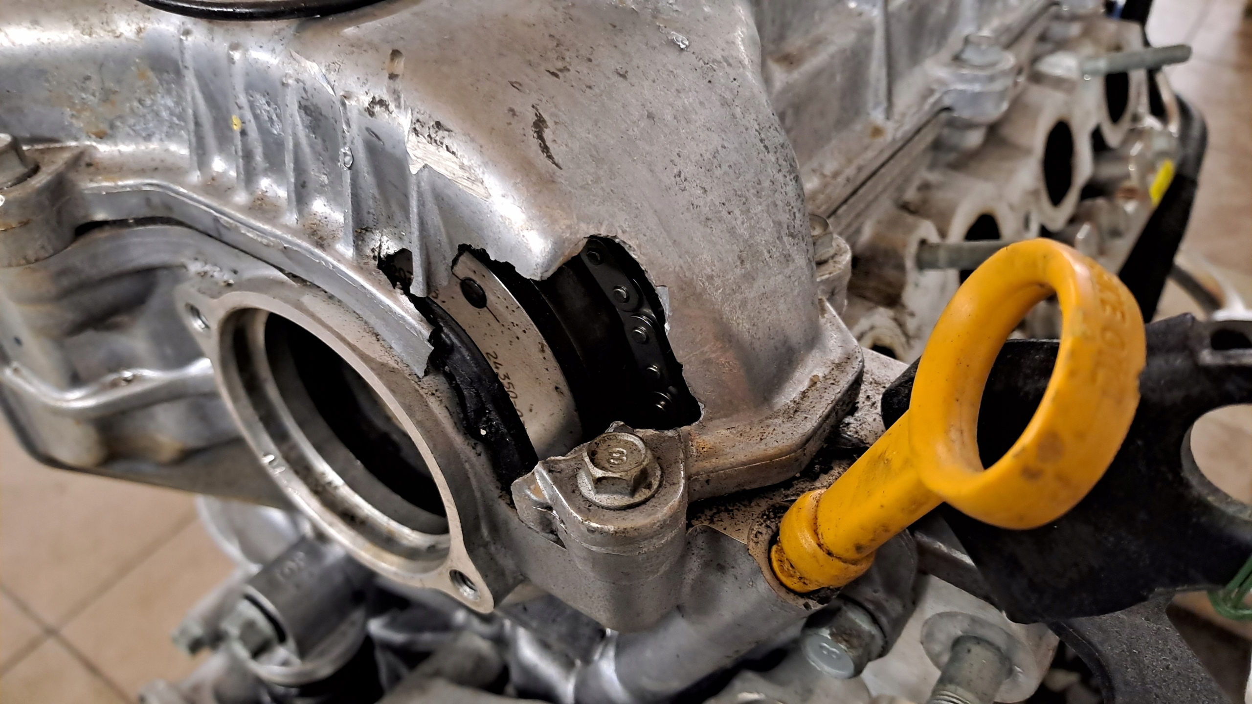 - Uszkodzona pokrywa zaworów - zdjęcia nr. 8-10 (łańcuch rozrządu nienaruszony)