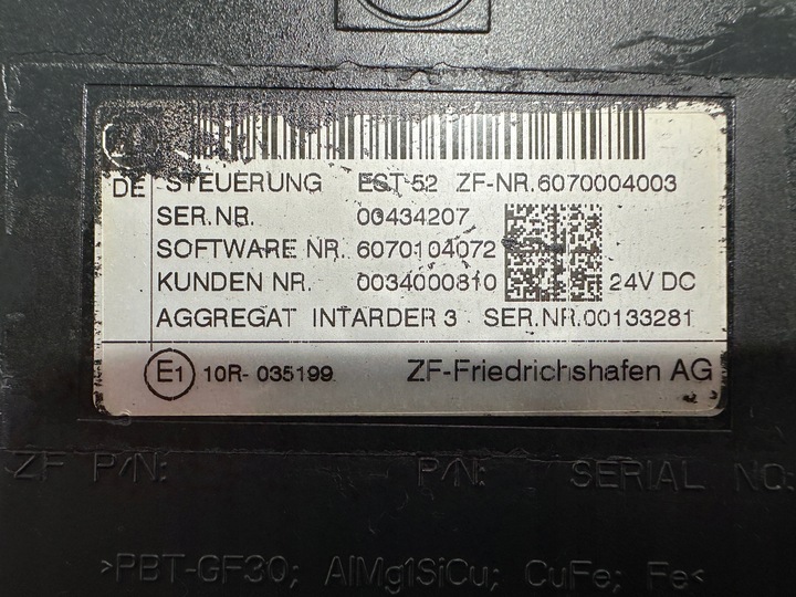 | Каталожний номер запчастини: | Sterownik, Moduł, Retardera, Intardera, ZF, EST, 52, 6070004003 |