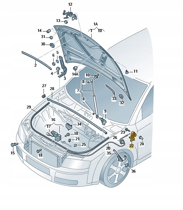 Raczka otwierania maski Audi A4 B6 B7