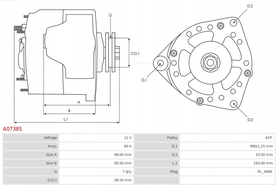| Каталожний номер запчастини: | A0738S |