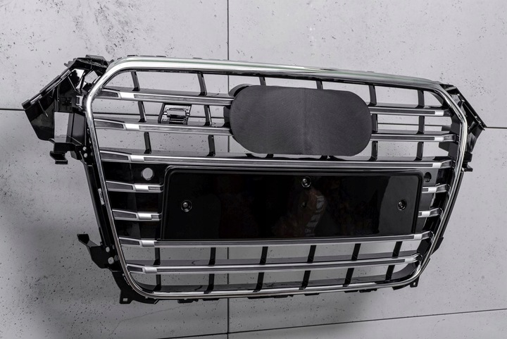 Stylizacyjny grill, atrapa chłodnicy, chromowany, dedykowany dla AUDI A4 (B8) 2011-2015 (wersja po faceliftingu). Grill posiada ramkę tablicy rejestracyjnej.