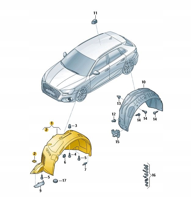 Підкрилок крила захист перед ліві audi a3 8y rs3 оригінал od aso