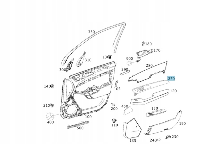 ORYGINALNA WEWNĘTRZNA LISTWA OZDOBNA DRZWI PASAŻERA MERCEDES W166
