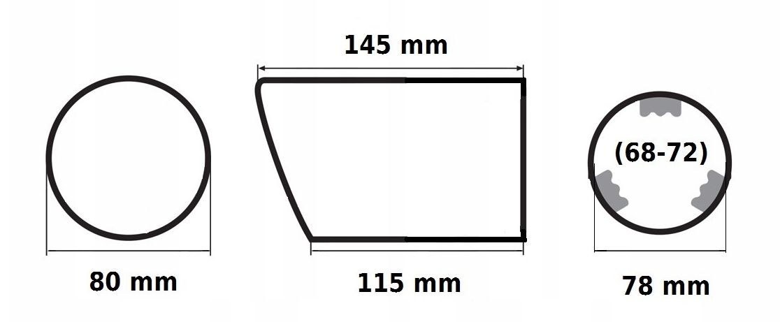 - Średnica montażowa*: 68 mm do 72 mm z wykorzystaniem zacisków