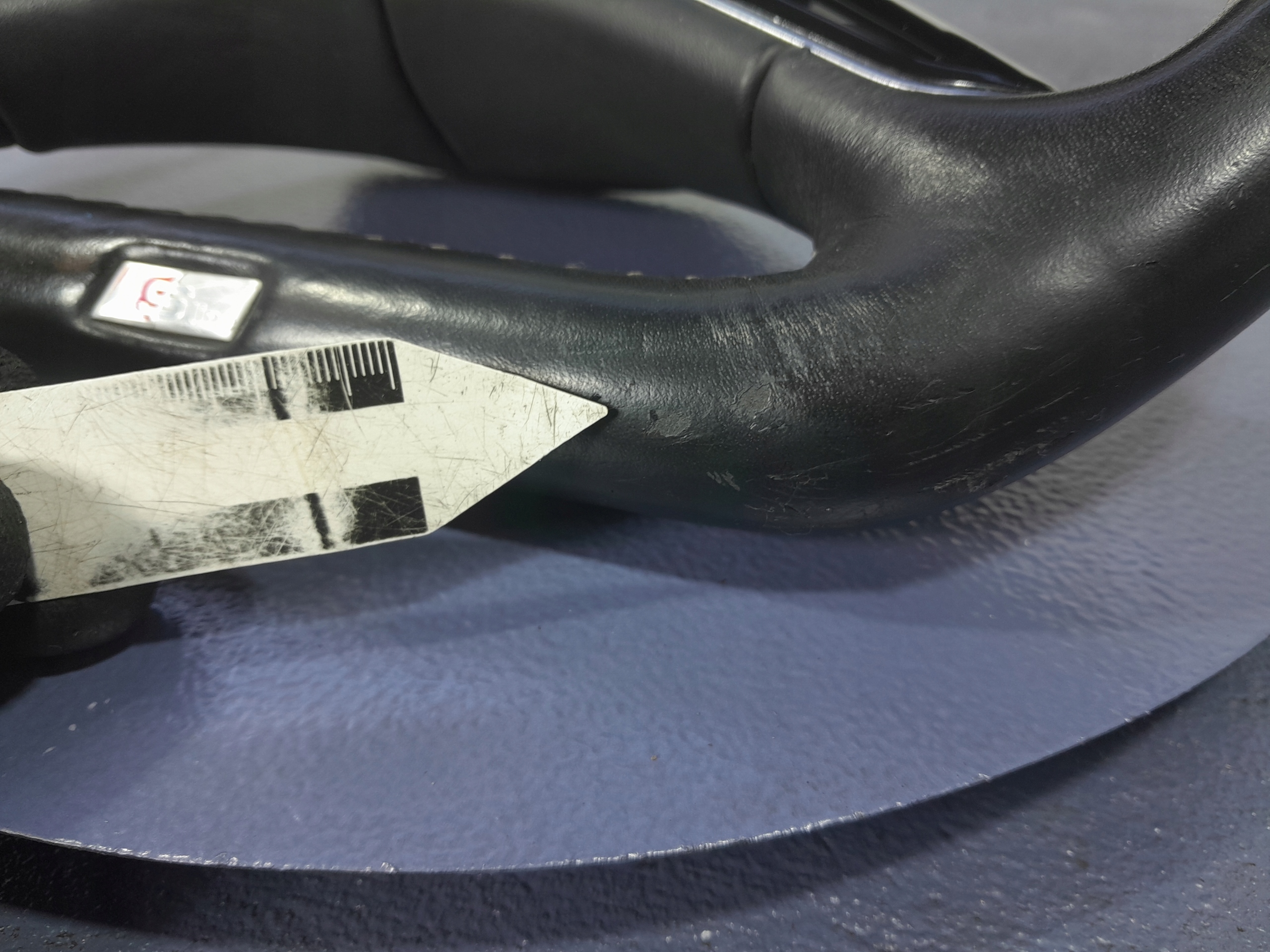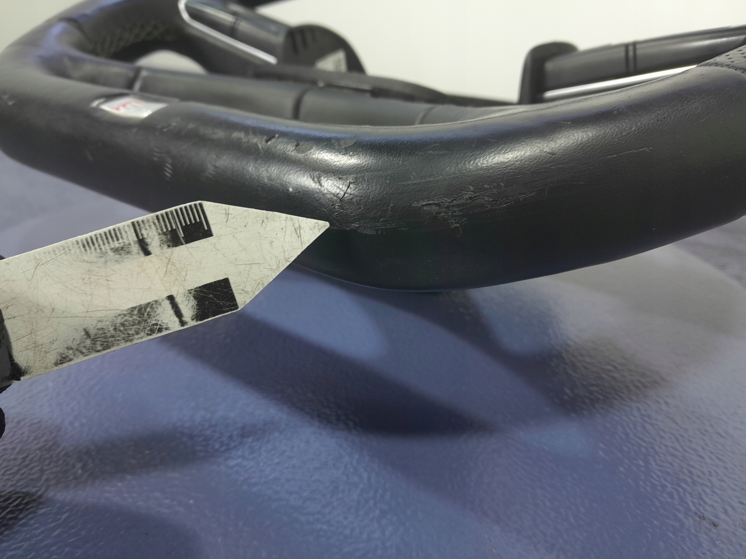 Opis: uszkodzenia widoczne na zdjęciach, przetarcia, zarysowania, - jakość B && AUDI Q7 II 4M KIEROWNICA MULTIFUNKCYJNA ŁOPATKI S-LINE SKÓRA 4M0419091
