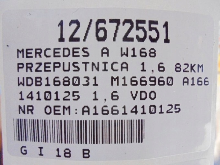 W168 дросельна заслінка a1661410125 1,6